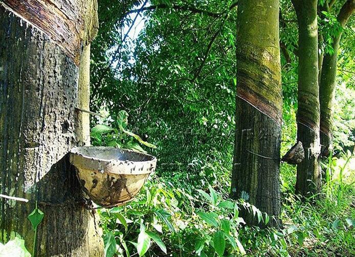 天然橡膠是用從橡膠樹上采集的樹膠,經過過濾、凝固制成。一般在樹齡5-7年的橡膠樹皮上傾斜切口后采得,橡膠樹一般可采集25-30年。橡膠樹生長需高溫多雨的環(huán)境,在年平均氣溫26-32℃之間、年平均降雨量在2000mm以上的熱帶地區(qū)栽培,因此其產地分布于南北緯10°以內,多集中在東南亞地區(qū)。由于天然橡膠是采自于多年生木本植物橡膠樹,雖整年都可采膠液,但其產量隨季節(jié)性而變動。因此不能在短期內調整供應,市場變化周期較長,但又因其本身的重要性,對世界經濟及重大政治事件有著強烈的反應,所以人們開發(fā)出化學方法的合成橡膠來滿足生產生活的需求。