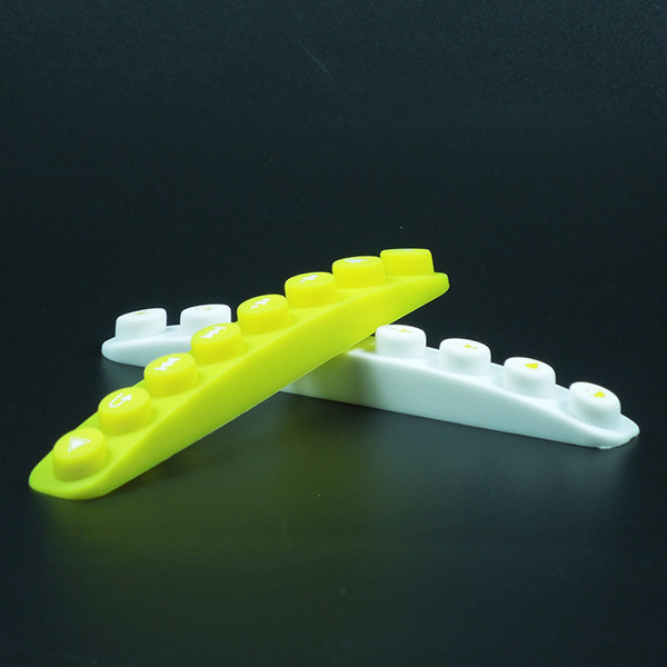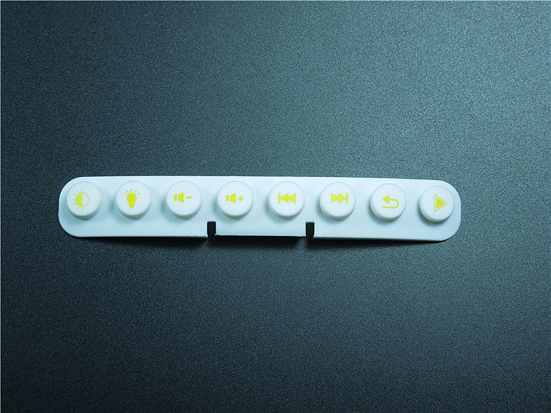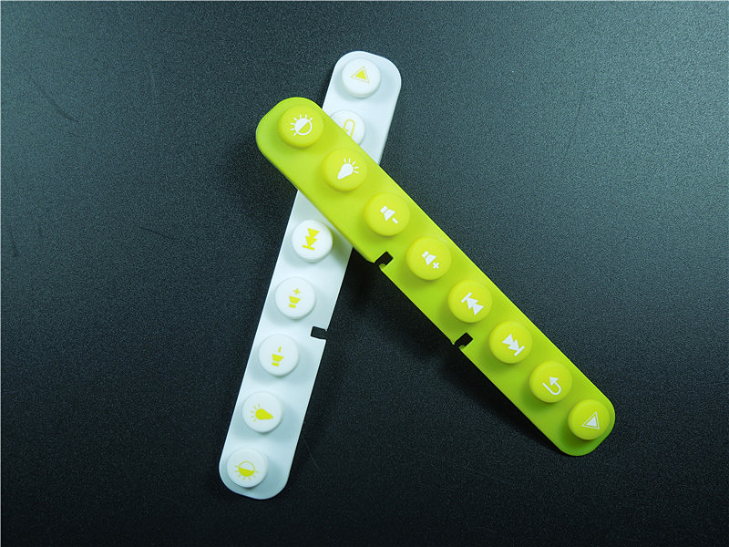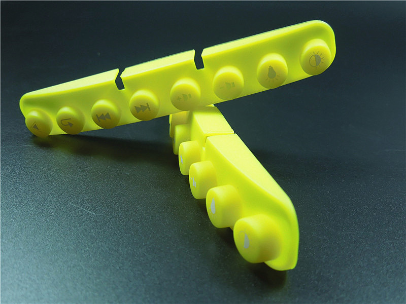 此款硅膠按鍵采用淡黃色色母調制,黃色色母加上半透明的硅膠原料配合硫化劑的添加是通過在里面加入對應顏色比例的顏色色膏混煉,得到相應需要的顏色,可自定義顏色定制加工生產,原材料采用食品級環(huán)保硅膠、質地柔軟,可塑性強。低碳環(huán)保,無毒無味,柔軟、防滑、防震、防滲水、隔熱、不易老化、不褪色、易清洗。